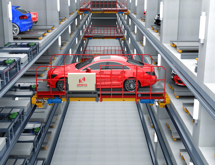 平面移动类自动停车系统是应用了高效的水平仓储技术,,,每个停车层配备有单独的横移车负责本层的车辆存取,,,,并由升降机 负责将车辆搬运至不同停车场,,驾驶员只需要将车辆停放在停车平台,系统将安全的把车停放在立体的停车位。。。 平面移动适用于场地狭长,存取车效率要求较高的项目,,,取车时间平均为90秒,运行效率高。。。在所有自动停车系统中,平面移动的横移速度较快,,,层高仅需1700mm并适用地上或地上有限的空间,节省土建成本。。平面移动类自动停车系统是现代化城 市中适合大平面大容量的立体车库。。